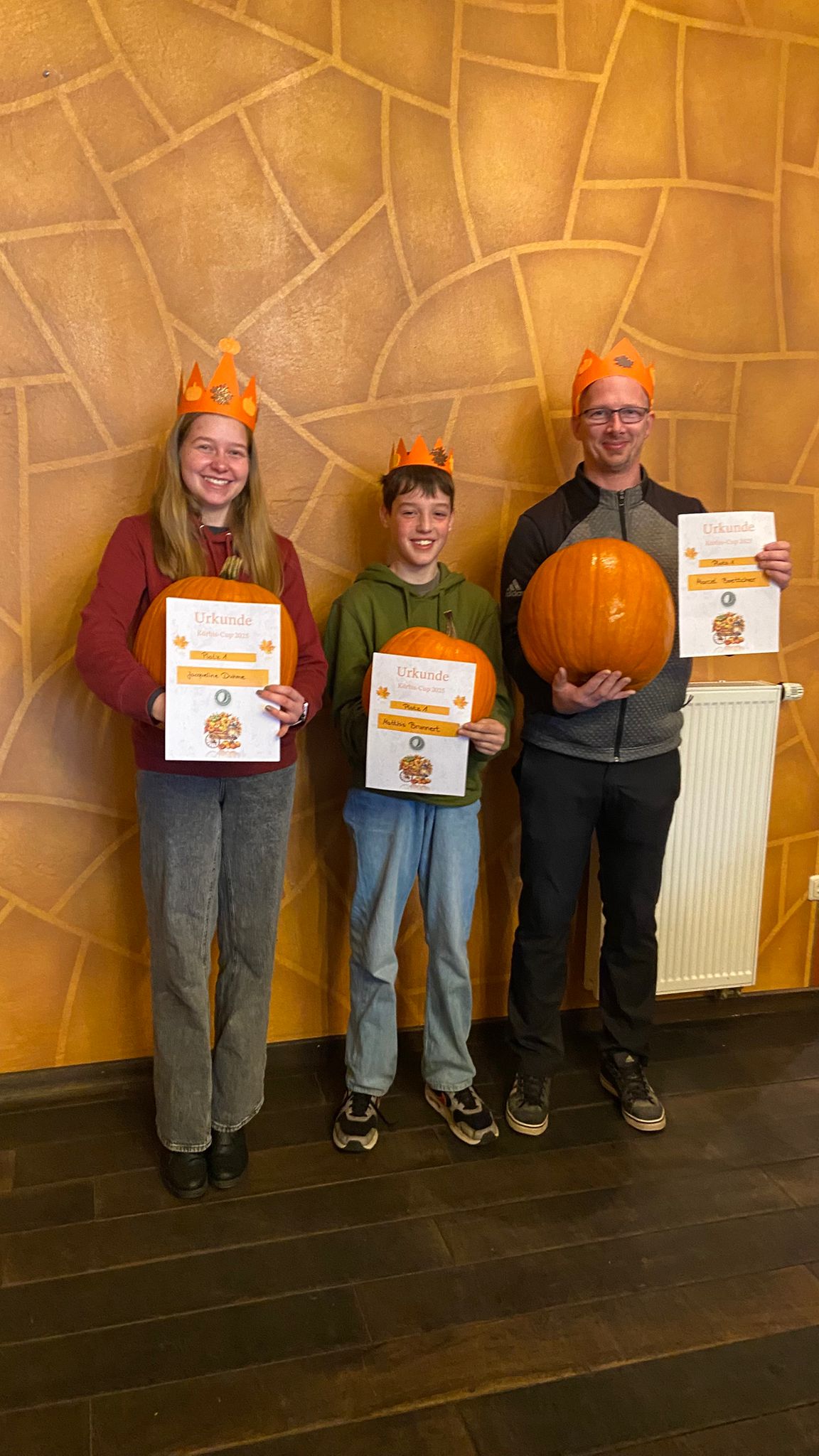 Am 26.10.2025 fand das letzte Swingolf-Turnier, der Kürbis-Cup, in Westenholz statt. Neben vielen Spielern aus Westenholz waren auch einige Essener Spieler dabei. Bei stürmischem und regnerischem Wetter ging es in das letzte Turnier und die Kürbis-Queen, der Kürbis-King und der Kürbis-Prinz wurden dabei ausgespielt. Bei den Damen belegte Stefanie Settertobulte den 2. Platz, bei den Kindern Sidney Zaremba den 2. Platz und Ben Settertobulte den 3. Platz. Bei den Herren errang Johannes Schalk den 2. Platz und Ralf Zehles den 3. Platz Die Kürbis-Queen wurde Jacqueline Duhme aus Westenholz, der Kürbis-Prinz Matthis Brunnert, auch Westenholz und der Kürbis-King Marcel Böttcher aus Essen. Zwei Wochen vorher fand das Vereinsturnier des 1. SGC Westenholz statt. Über 30 Spielerinnen und Spieler spielten an zwei Tagen der Sieger aus. Bei den Kindern belegte Ben Settertobulte mit 105 Schlägen den 1. Platz gefolgt von Leandro Schröder mit 115 Schlägen auf dem 2. Platz. Bei den Jugendlichen errang Matthis Brunnert mit 211 Schlägen den 1. Platz. Bei den Frauen belegte Margret Hane mit 147 Schlägen den 1. Platz, Stefanie Settertobulte mit 151 den 2. Platz und Bettina Leppelt mit 172 den 3. Platz. Bei den Männern belegte Ruurd Sol mit 141 Schlägen den 1. Platz, Ralf Zehles mit 146 den 2. Platz und Martin Sträter mit 147 Schlägen den 3. Platz. Johannes Schalk errang bei den Senioren mit 136 Schlägen den 1. Platz, Rainer Krause mit 141 Schlägen den 2. Platz und Rolf Häuser mit 142 Schlägen den 3. Platz. Eine Woche später wurde der Vereinsmeister anhand des Pyramiden-Cups ausgespielt. Dies ist eine sehr spannende Spielvariante, bei der jeder Verlierer eine zweite Chance bekommt. Dort ging Oliver Duhme als Sieger hervor. Der „Lucky Looser“ wurde Martin Sträter. Das Ergebnis der Bundesliga Nord für das Jahr 2025 war für den 1. SGC Westenholz e.V. nicht ganz so perfekt. In der Liga 1 belegt der Verein mit 1.891 Schlägen den 6. Platz und in der Liga 2 mit 1.519 Schlägen den 3. Platz. Jetzt geht der Verein aber erst einmal in die Winterpause und im April 2026 startet die neue Saison – mit einem dann hoffentlich besseren Ergebnis. Aber da der Nachwuchs in Westenholz eine perfekte Saison gespielt hat, stehen die Chancen nicht schlecht. Wer also Interesse hat, bei den Kindern und Jugendlichen mitzuspielen, der kann sich gerne bei Stefanie Settertobulte unter der Rufnummer 0171-7793147 melden.  |